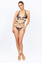 The Night Strappy Bikini is for the woman who dares to stand out. This lingerie-inspired design features a sleek triangle top with distinctive "V" side strap details, paired with a bold, strappy bikini bottom for a look that's both elegant and edgy. Available in a stunning gunmetal shade, this luxurious bikini is perfect for making a statement at the pool, beach, or boat. Pair it with one of our chic cover-ups for an unforgettable resort ensemble that showcases your unique style.