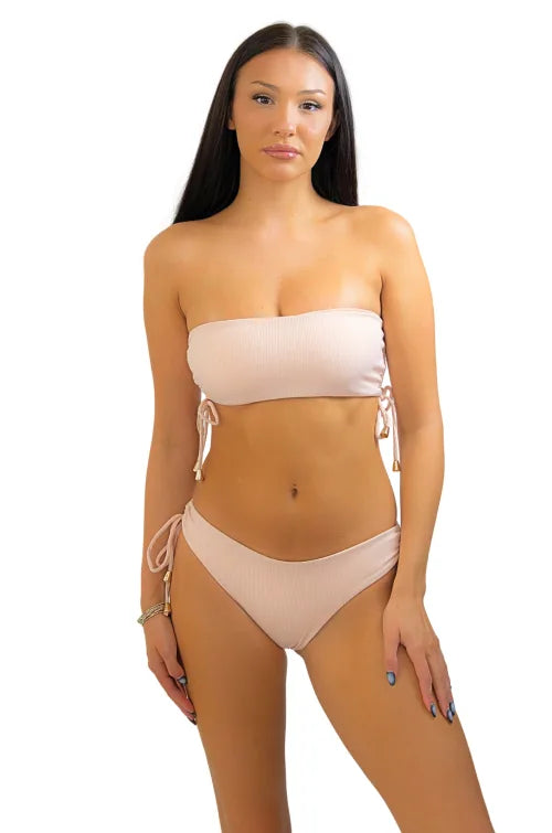 Embrace effortless luxury with the Buccoo BANDEAU Bikini. Crafted for the tasteful woman who values both style and comfort, this stunning bikini features a bandeau top with delicate side tie details at both the top and bottom. Available in two timeless colors – soft Pale Pink and refreshing Lake Blue – it promises to complement your chic and refined beachside look.
