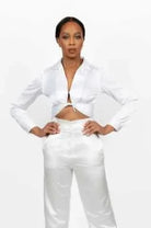 Elevate your wardrobe with the Sense Blouse, a sophisticated staple designed for sun-soaked getaways and stylish evenings. Crafted from luxuriously smooth satin, this fitted, cropped blouse offers a chic silhouette that flatters your form.